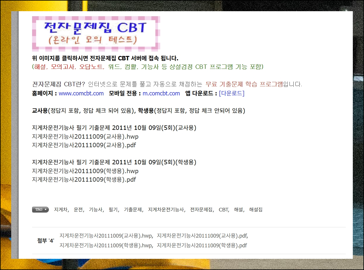 comcbt에서는 지게차운전기능사 기출문제 자료를 HWP와 PDF 두 가지 형태로 무료 제공하고 있어요. 보다 심화된 학습을 원하시는 분들을 위한 완벽한 대안입니다.