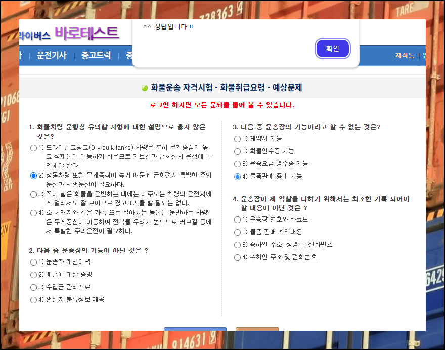 화물운송자격증 기출문제 풀기, 인터넷으로 합격까지 한번에