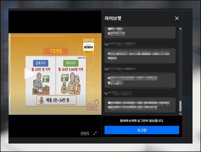 방송 화면이 나타나면 가운데 재생 버튼을 눌러보세요. 그러면 곧바로 시청이 시작될 거예요. 화면 구석에 있는 여러 기능들을 잘 활용하면 더 좋은 시청 경험을 만들 수 있어요. 소리 크기를 조절하거나 화질을 바꿀 수도 있고요.