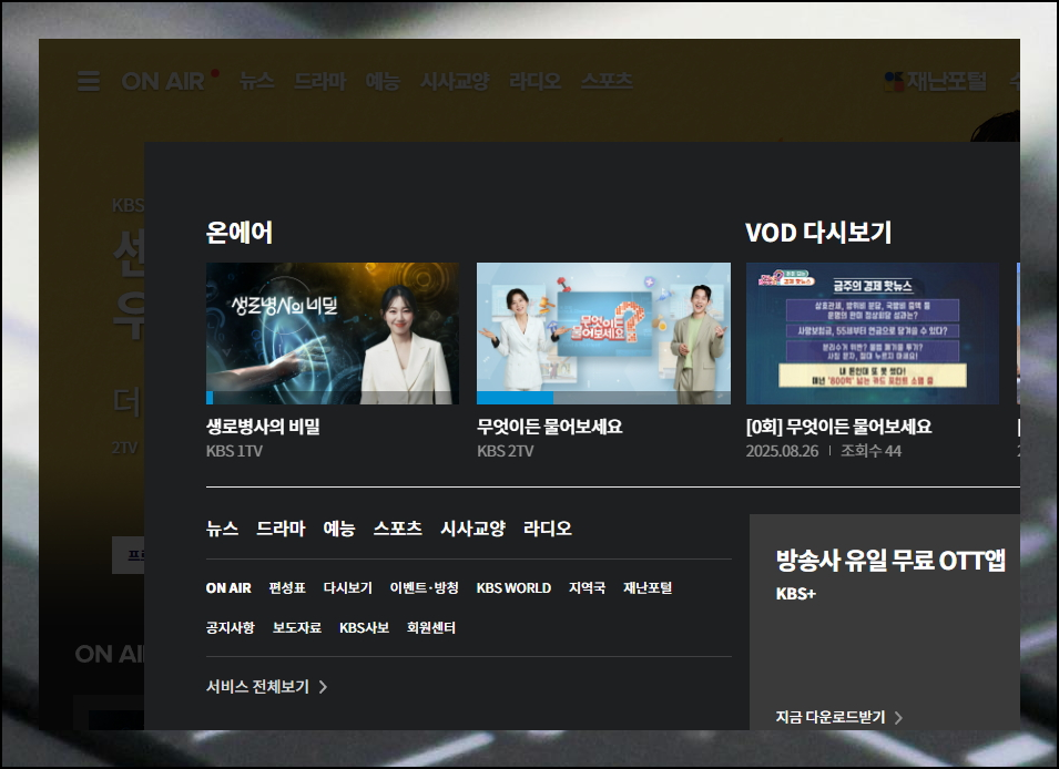집에 있는 TV가 고장 났거나 이동 중에 놓치고 싶지 않은 프로그램이 있을 때, 어떻게 하시나요? 요즘은 컴퓨터나 모바일 기기만 있으면 언제든지 방송 시청이 가능해졌어요. KBS에서 제공하는 온라인 서비스를 통해 지상파 2TV 실시간 방송을 무료로 감상할 수 있거든요.