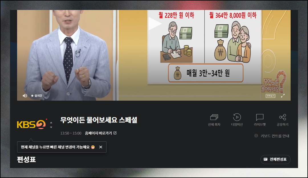 지상파 2TV 실시간 방송 프로그램 시청하기