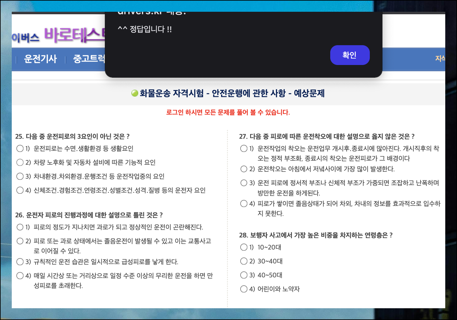 운송업계에 종사하고 계신다면 "드라이버스"라는 사이트 이름을 한 번쯤은 들어보셨을 거예요. 이 플랫폼은 주로 운전기사들을 위한 구인구직 서비스로 유명하죠. 그런데 여기서 화물운송종사자 자격증 시험 준비를 위한 기출문제와 학습 자료도 함께 제공하고 있어요. 화물운송종사자 자격증 관련 정보가 체계적으로 정리되어 있어서 수험생들에게 도움이 많이 됩니다.