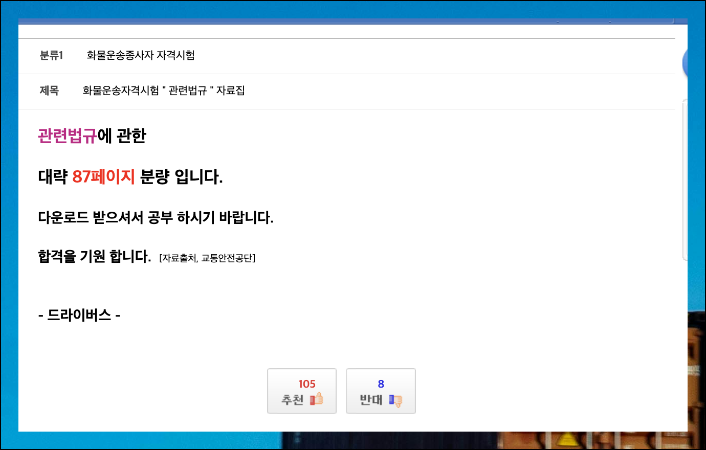 화물운송종사자자격증 기출문제 무료로 풀기, 수험자료 제공
