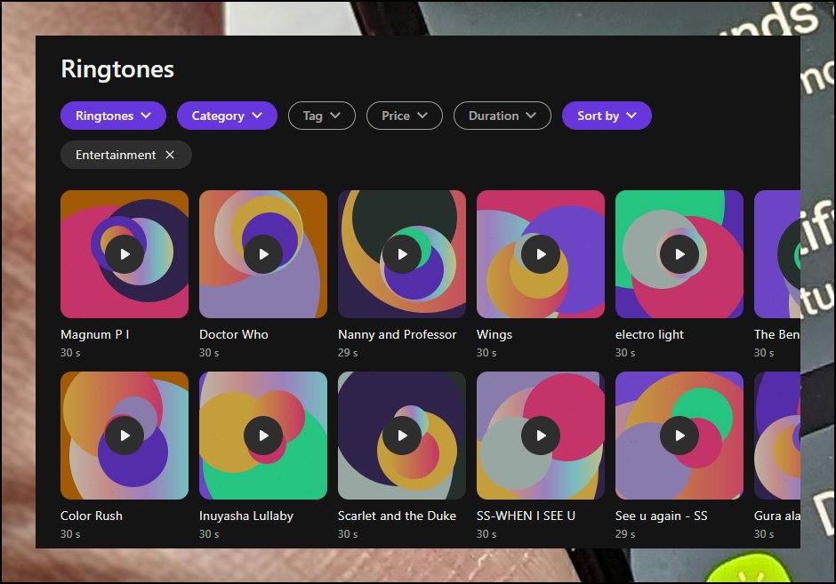 웹사이트에 들어가면 상단 메뉴에서 "RINGTONES" 항목을 클릭하면 됩니다. 벨소리 전용 섹션으로 이동하는 메뉴예요. 다양한 장르별로 분류된 카테고리를 확인할 수 있을 거예요. 검색 결과 화면에는 정말 다양한 음원들이 나열되어 있어요. 각 음원 제목 하단에 표시된 숫자는 재생 길이를 알려주는 정보니까 벨소리 용도로 적합한지 미리 판단할 수 있습니다.