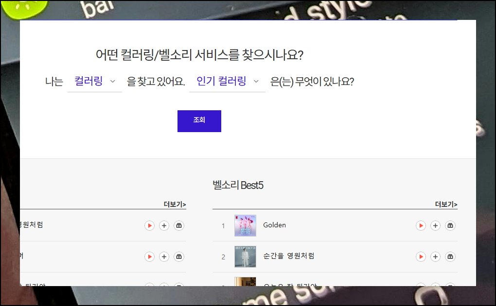 초기 화면에는 현재 가장 인기 있는 링톤 5개가 먼저 표시돼요. 더 많은 옵션을 보려면 "더보기"를 클릭하면 됩니다. 검색 기능을 통해 특정 곡을 직접 찾을 수도 있고요. 실시간 인기 차트와 최신 업데이트 목록을 통해 트렌드를 파악할 수 있어요. 한국 음악 시장에 특화된 콘텐츠가 많아서 국내 이용자들에게 친숙한 선택지가 풍부합니다.