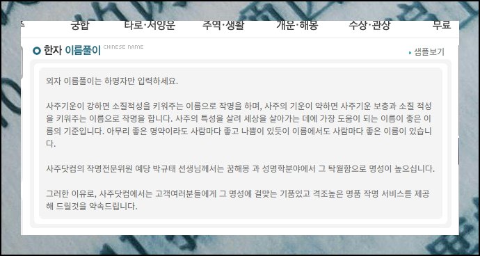 | 무료 사주풀이 사이트 모음 2024년 운세부터 평생 팔자까지 한눈에 (7) | 2024.09.19 |