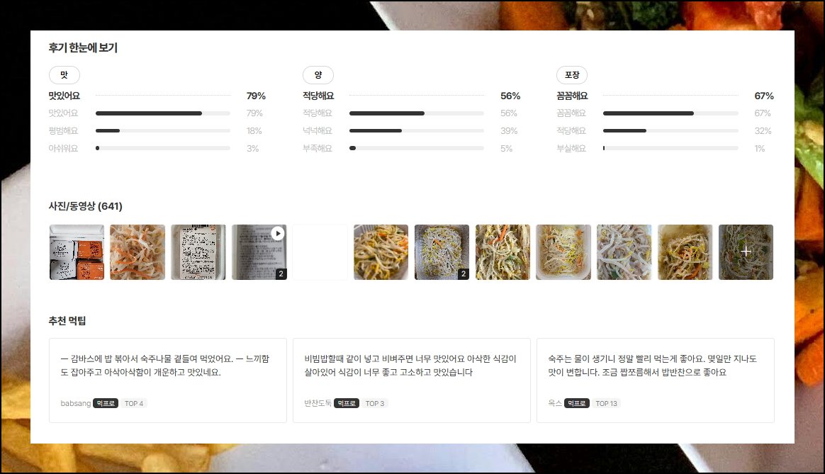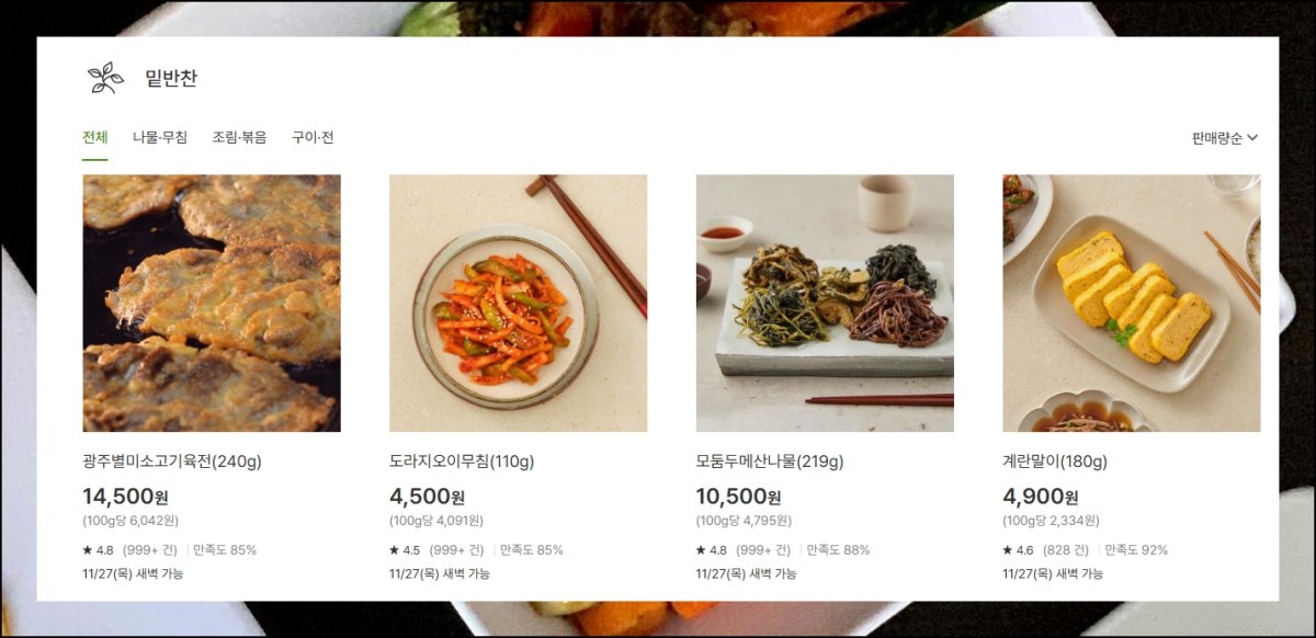 요즘 사람들은 직접 요리하는 대신 필요한 반찬을 소량씩 구매하는 방식을 선호합니다. 바쁜 일상 속에서 시간과 비용을 아낄 수 있는 현명한 선택이죠. 온라인 플랫폼을 살펴보면 소비자들이 어떤 음식을 선호하는지 파악할 수 있어요. 이런 사이트에서는 종류50가지가 넘는 다양한 종류의 메뉴를 한곳에서 만나볼 수 있습니다.
