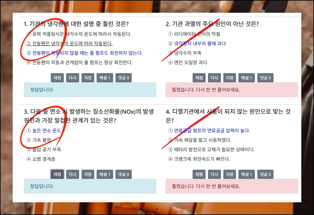 자격증 취득의 첫걸음은 실전 감각을 익히는 것입니다. 웹사이트를 통해 지게차운전기능사 필기 문제를 다양하게 접해볼 수 있어요. 특히 엔진 파트가 자주 출제되는 경향이 있습니다. 처음 공부하시는 분들도 걱정하지 마세요. 문제를 풀고 나면 바로 채점되고, 상세한 설명도 함께 제공되니까요.