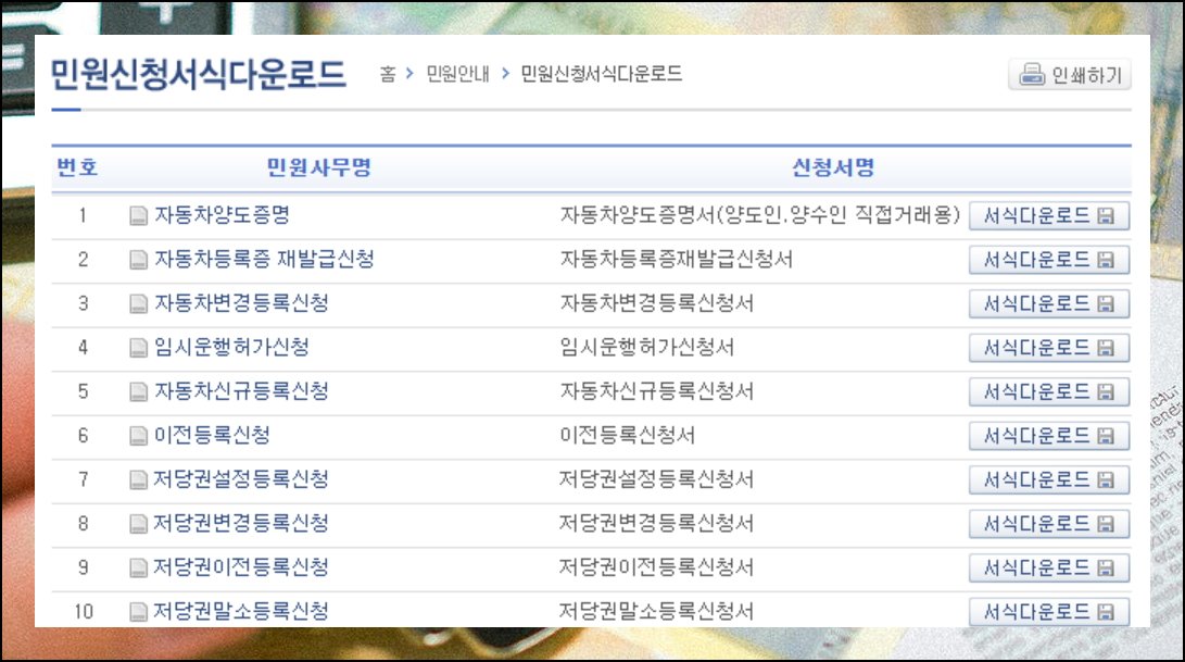 버전이 바뀌면서 어떤 걸 써야 할지 고민되시죠. 항상 가장 최근 것을 받아서 쓰는 게 정답이에요. 자동차민원 대국민포털에서 원하시는 문서를 찾을 수 있습니다. 비용은 전혀 들지 않아요. 모든 서류가 무료로 제공되니까요. 처음 이용하시는 분들도 어렵지 않게 따라하실 수 있도록 단계별로 안내해드릴게요.