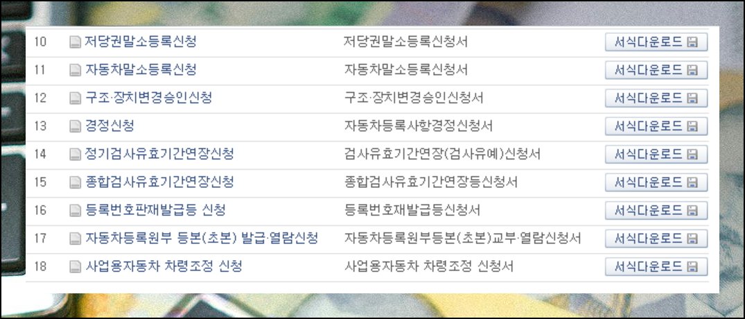필요한 자동차 관련 서식을 받으려면 먼저 민원안내 메뉴로 들어가세요. 그 안에 민원신청서 서식 다운 항목이 존재해요. 매매계약서뿐만 아니라 등록증 재발급이나 신규등록 관련 양식도 함께 받을 수 있습니다. HWP 확장자로 된 한글 문서 형태예요. 아래아 한글이 깔려 있으면 바로 열람 가능하고요. 프로그램이 없다면 한글과 컴퓨터 공식 사이트에서 무료 뷰어를 다운 받으면 됩니다.