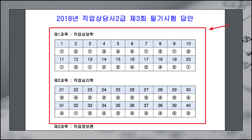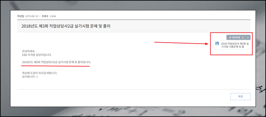 2018년도 제3회 직업상담사 2급 실기시험 기출문제 및 풀이 게시물을 선택해 보았어요. 게시물을 열어보면 화면 우측 부분에 첨부파일이 있는데요. 해당 파일을 클릭하면 다운로드 받을 수 있어요. 다운로드 받은 파일은 PDF 포맷으로 되어 있으니 다운 받기 이전에 pdf 뷰어를 컴퓨터에 설치해 놓는 것이 좋아요.
