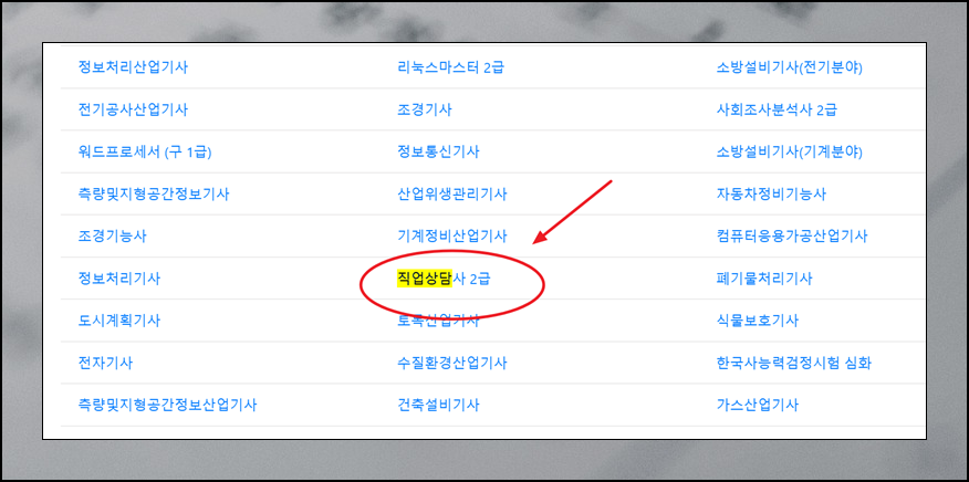 이곳에서는 직업상담사 2급은 물론이고, 식물보호기사, 폐기물처리기사, 자동차정비기능사 등 다양한 자격증 시험에 관한 자료를 제공하고 있어요.