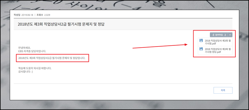 제가 얻은 기출문제 자료는 ebs 사이트에서 얻었는데요. 해당 사이트에서는 여러 자격증 시험을 준비할 때 도움이 되는 자료를 많이 제공하고 있어요. 직업상담사 2급의 경우 실기는 물론이고, 필기 시험을 준비할 때에도 이곳의 자료를 사용할 수 있죠.