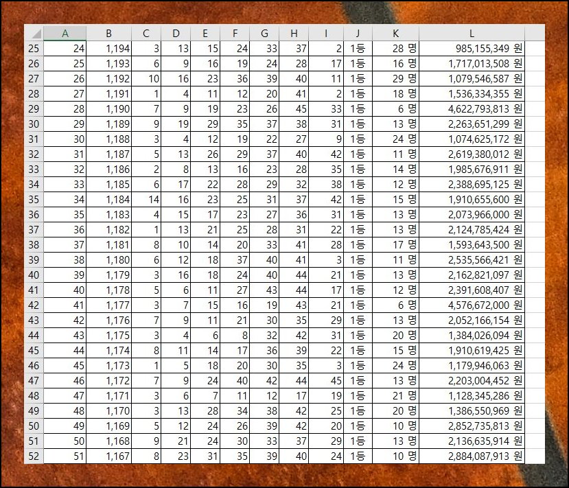 로또당첨번호 조회 전체보기, 엑셀 다운로드까지 한번에