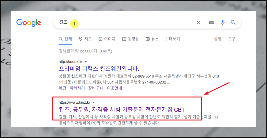 필기의 경우 온라인 상에서 바로 기출문제 풀이가 가능한데요. 킨즈 사이트를 사용하면 돼요.
