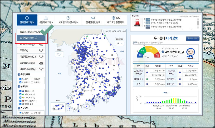 국내외 미세먼지 위성사진 실시간 서비스 이용하기.