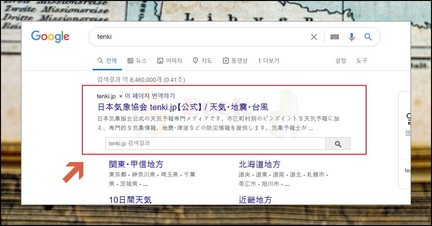꽤 전문적이고, 국내에서도 이용하는 사람이 많은 해외 사이트를 소개해 드릴게요. 바로 tenki 인데요. 일본어로 되어 있지만, 미세먼지를 확인하는 데에는 어려움이 전혀 없어요. 실시간 지도와 수치만 확인하면 되기 때문이에요. 검색을 통해 사이트에 접속해 주세요.