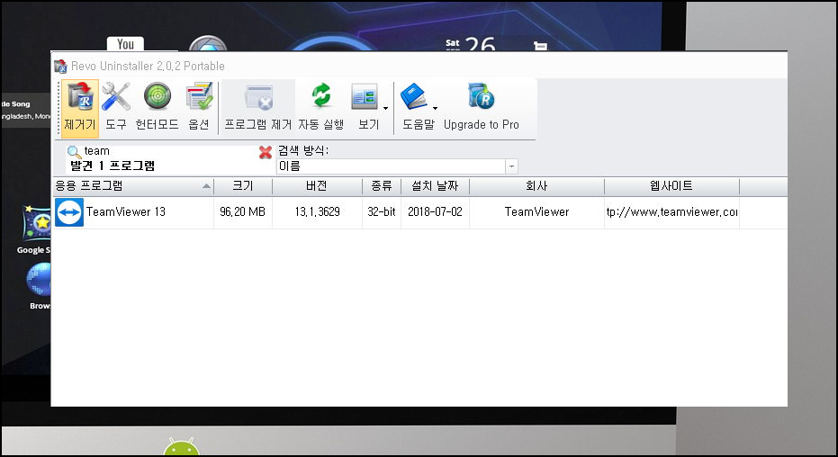 본격적으로 만료가 된 평가판 팀뷰어를 삭제하겠습니다. 돋보기 옆에 Team을 입력하여 엔터키를 누르면 팀뷰어가 나타납니다. 검색 결과를 클릭한 상태에서 메뉴에 있는 "프로그램 제거" 버튼을 눌러주세요.