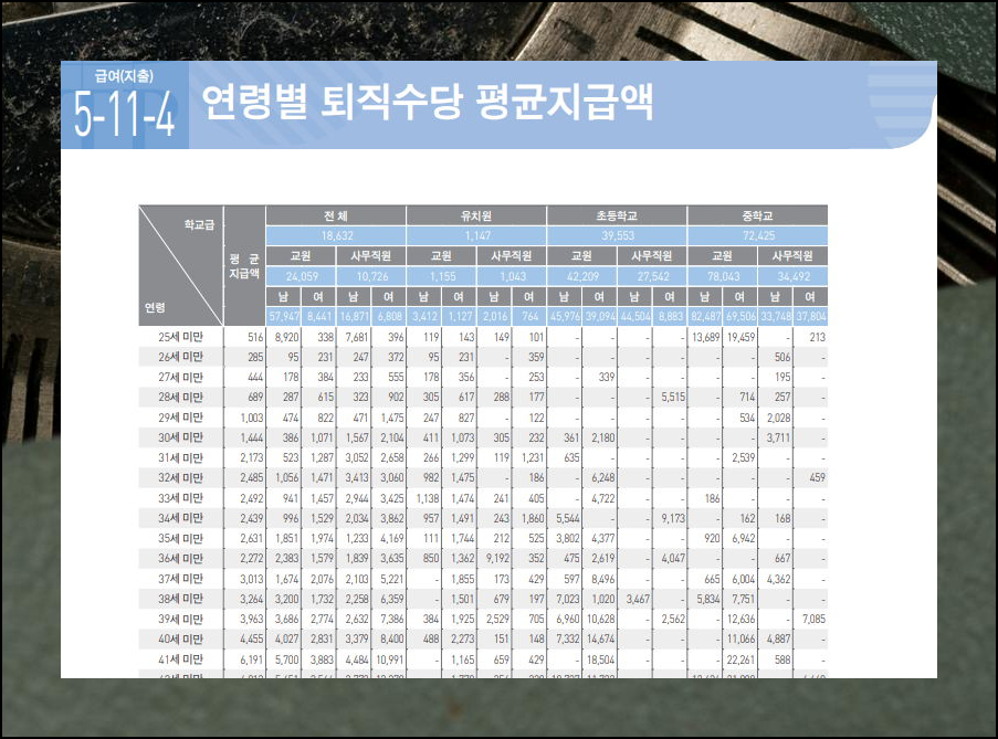 여러 기준에 따른 평균 수령액을 확인하실 수 있습니다. 특수한 상황이 아니라면, 대부분은 재직기간과 연령에 따라 퇴직수당의 차이가 있을 거에요.