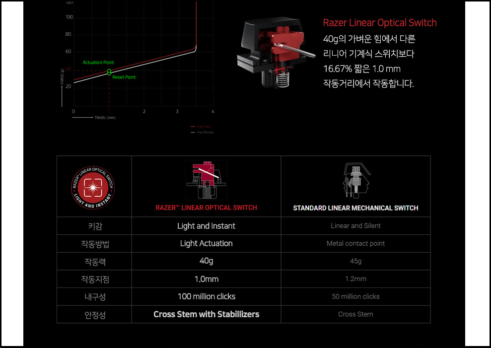 하루 종일 키보드와 씨름하다 보면 손가락 관절이 아파오는 게 사무직 종사자들의 공통된 고민이에요. 이런 불편함을 해소하고자 수많은 키보드를 거쳐 마침내 레이저 헌츠맨 토너먼트 리니어 광축 키보드를 만나게 되었습니다.