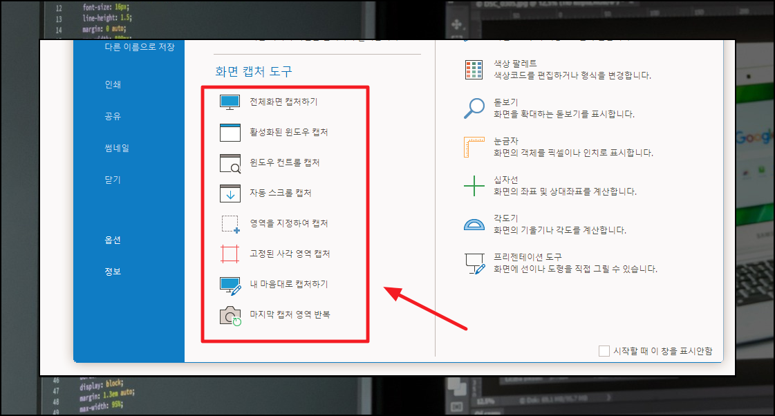 6. 원하는 방식으로 캡쳐하는 방법