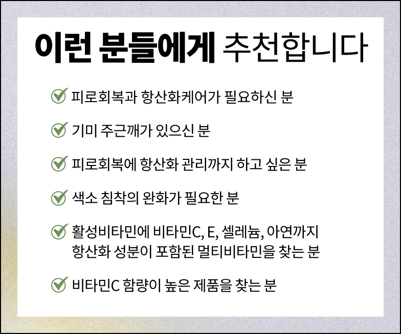 바쁜 일상 속 우리의 건강 상태는 악화되기 쉬운 환경에 처해 있습니다. 이러한 상황에서 면역력 강화와 피로 회복을 위한 영양제 선택은 매우 중요한데요.