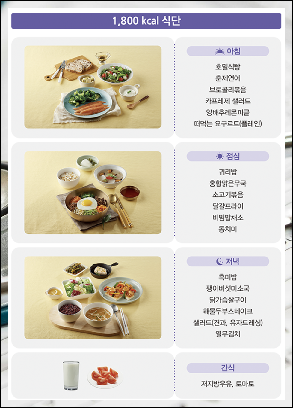 각 계절에 맞는 신선한 재료로 구성된 영양가 있는 식단을 확인할 수 있습니다. 당뇨환자의 건강을 고려한 5가지 기본 식단을 참고해서 1주일 식단표를 구성하면 되는데요. 아침부터 간식까지 균형 있게 배치하는 것이 매우 중요해요.
