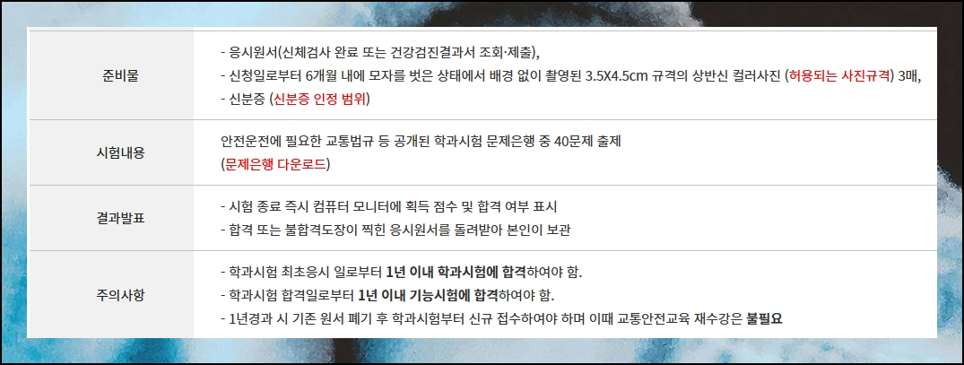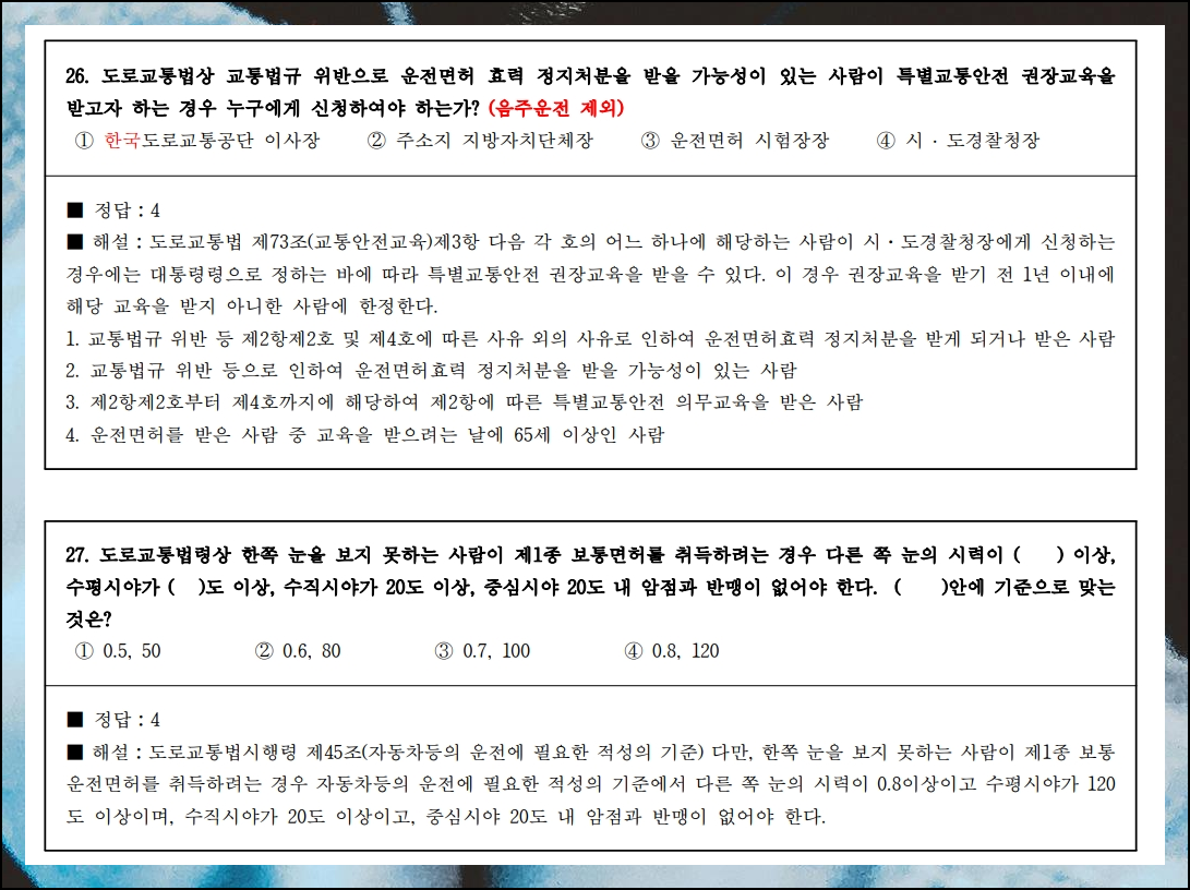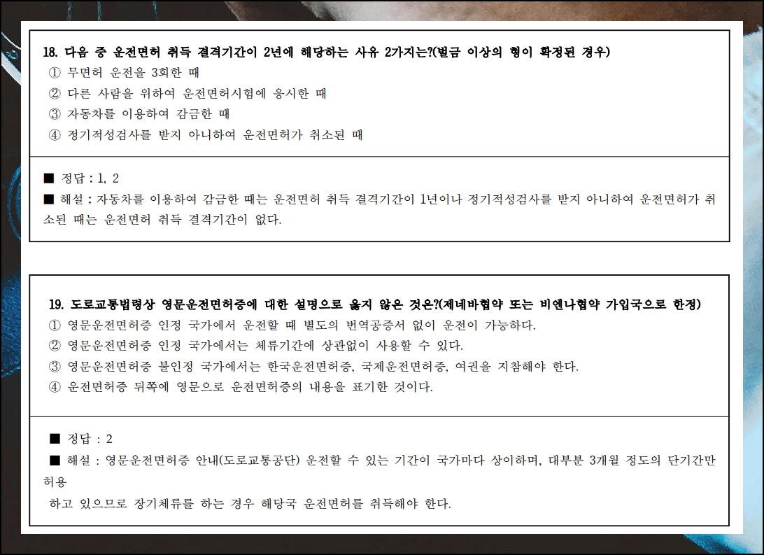 방심하지 말고 시험문제집으로 충분히 준비하세요. 한두 문제 차이로 불합격하는 경우가 많으니, 철저한 준비로 운전면허 시험에 한 번에 합격하시기 바랍니다.