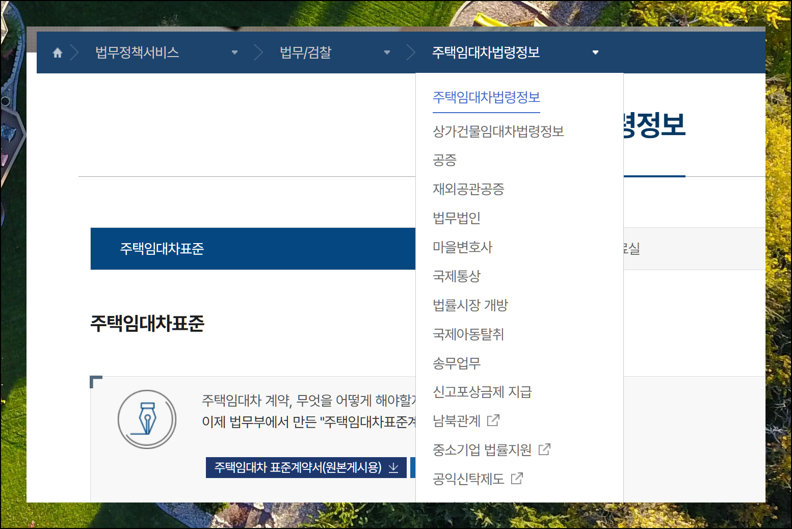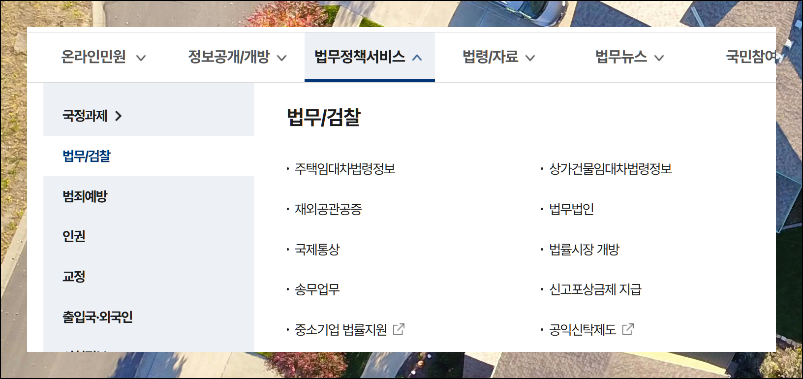 법무부 사이트는 메뉴가 많아 보이지만 원하는 자료를 쉽게 찾을 수 있어요. 메인 화면의 법무 정책 서비스에서 법무검찰 메뉴를 선택하시면 됩니다. 그 외에도 부동산 임대차와 관련된 법령 정보와 최신 법무 소식도 확인할 수 있으니 꼭 살펴보세요.