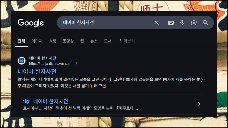 이런식으로 한자 찾기 방법을 진행하면 됩니다.