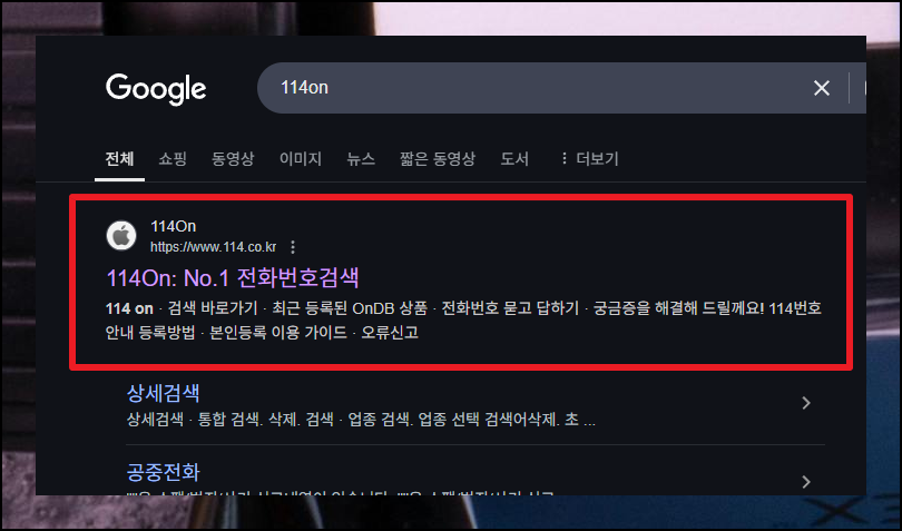 114on 사이트를 통해서도 이름으로 사람을 찾아볼 수 있습니다. 찾는 사람이 개인 사업을 하고 있거나 어느 단체의 대표를 맞고 있을 때 유용한 방법이죠.
