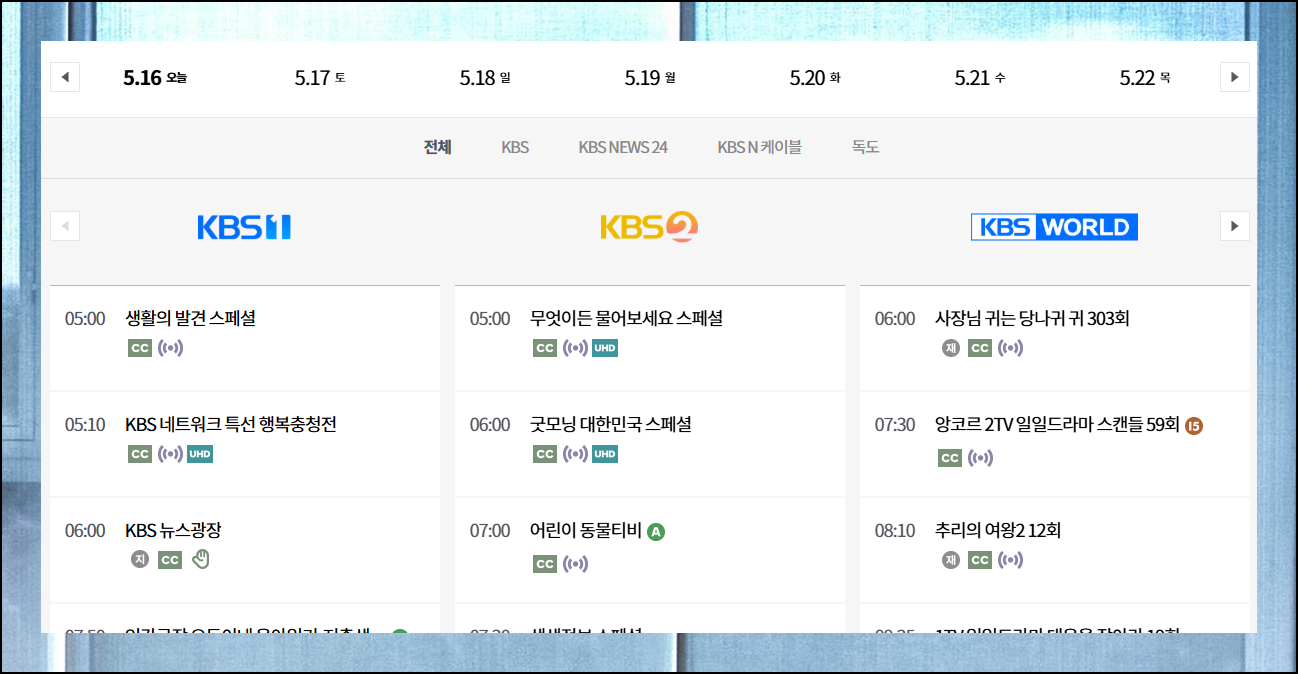 이제 본격적으로 티비 생방송 시청을 하는 방법을 알아볼게요. KBS 공식 홈페이지에서는 프로그램 방영 순서를 확인하고 자세한 정보도 받을 수 있습니다. 미리 편성표를 통해 보고 싶은 프로그램을 체크해두면 놓치지 않고 감상할 수 있죠.