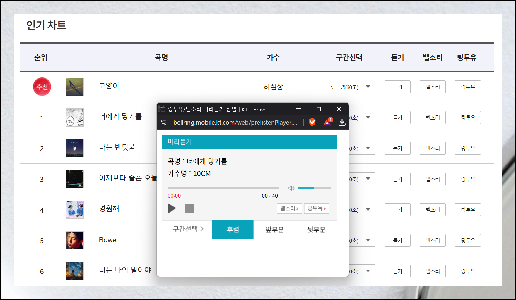 시즌마다 인기 노래는 계속 바뀌기 때문에 실시간 차트 확인이 중요해요. kt 웹사이트에서는 최신 휴대폰 벨소리 순위를 한눈에 볼 수 있습니다.