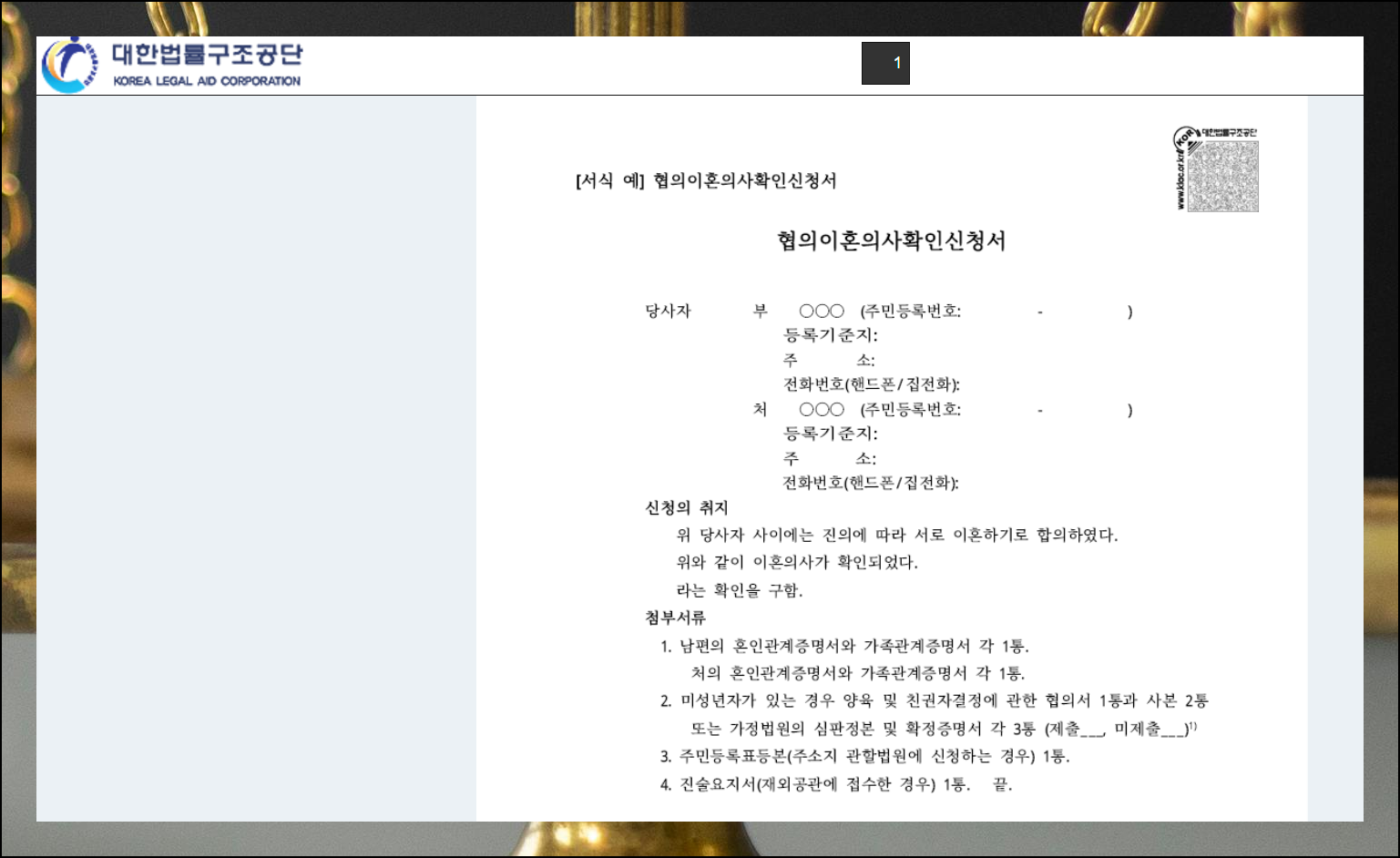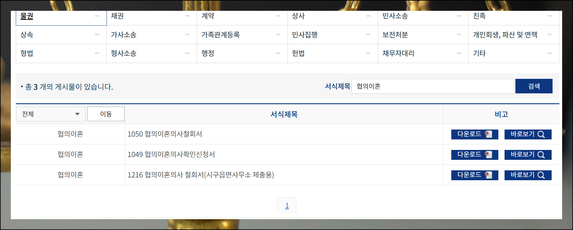 (1) 법률서식 제공 사이트 안내