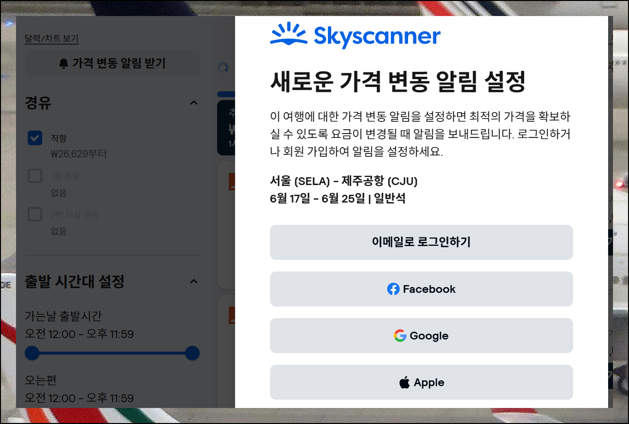 스카이스캐너 사이트에서 더욱 저렴한 제주항공권을 발견하는 순간 여러분에게 즉시 알려줍니다.