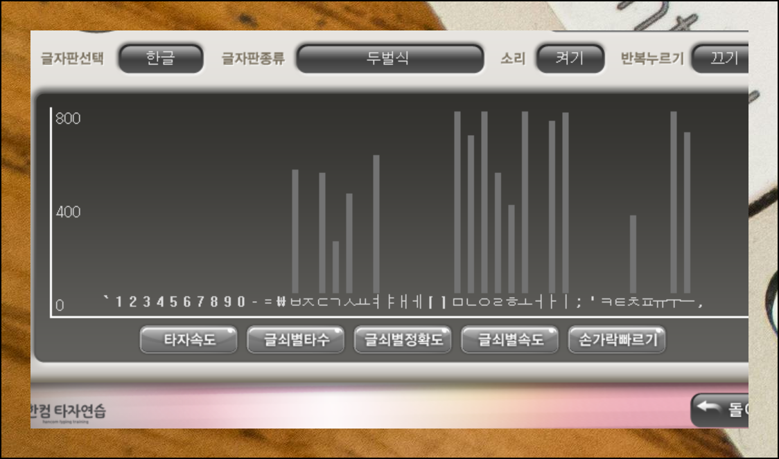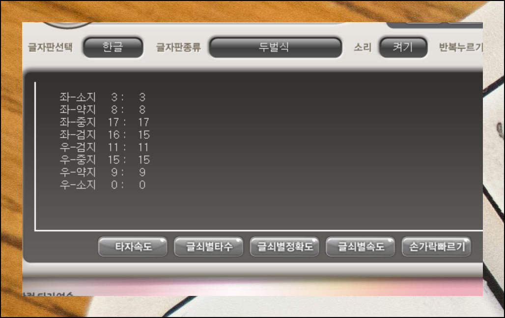 오프라인 환경에서도 자유롭게 이용할 수 있는 장점은 물론이고, 여러 가지 실력 평가 시스템을 이용할 수 있기 때문이죠. 단순한 타수와 정확도 측정을 넘어서 각 손가락의 속도, 키별 정확도까지 세세하게 분석해줍니다.