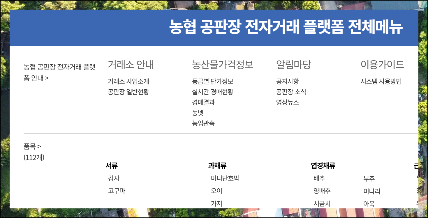농협 공판장 플랫폼의 첫 화면에 접속하면 다양한 유용한 기능들을 발견할 수 있습니다. 상단 메뉴에서 농산물 가격정보를 선택하면 주요 작물들의 당일 시세를 즉시 볼 수 있어요. 더 세밀한 품목 조회나 부가 서비스를 원한다면 하단에 배치된 세부 옵션들을 이용하시면 됩니다.