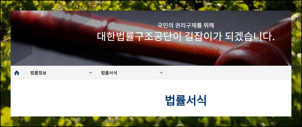 홈페이지 상단 메뉴에서 법률정보를 클릭하세요. 하위 메뉴가 펼쳐지면 가장 위에 있는 법률서식을 선택하시면 됩니다. 사이트 구성이 사용자 친화적이라 쉽게 찾을 수 있어요.