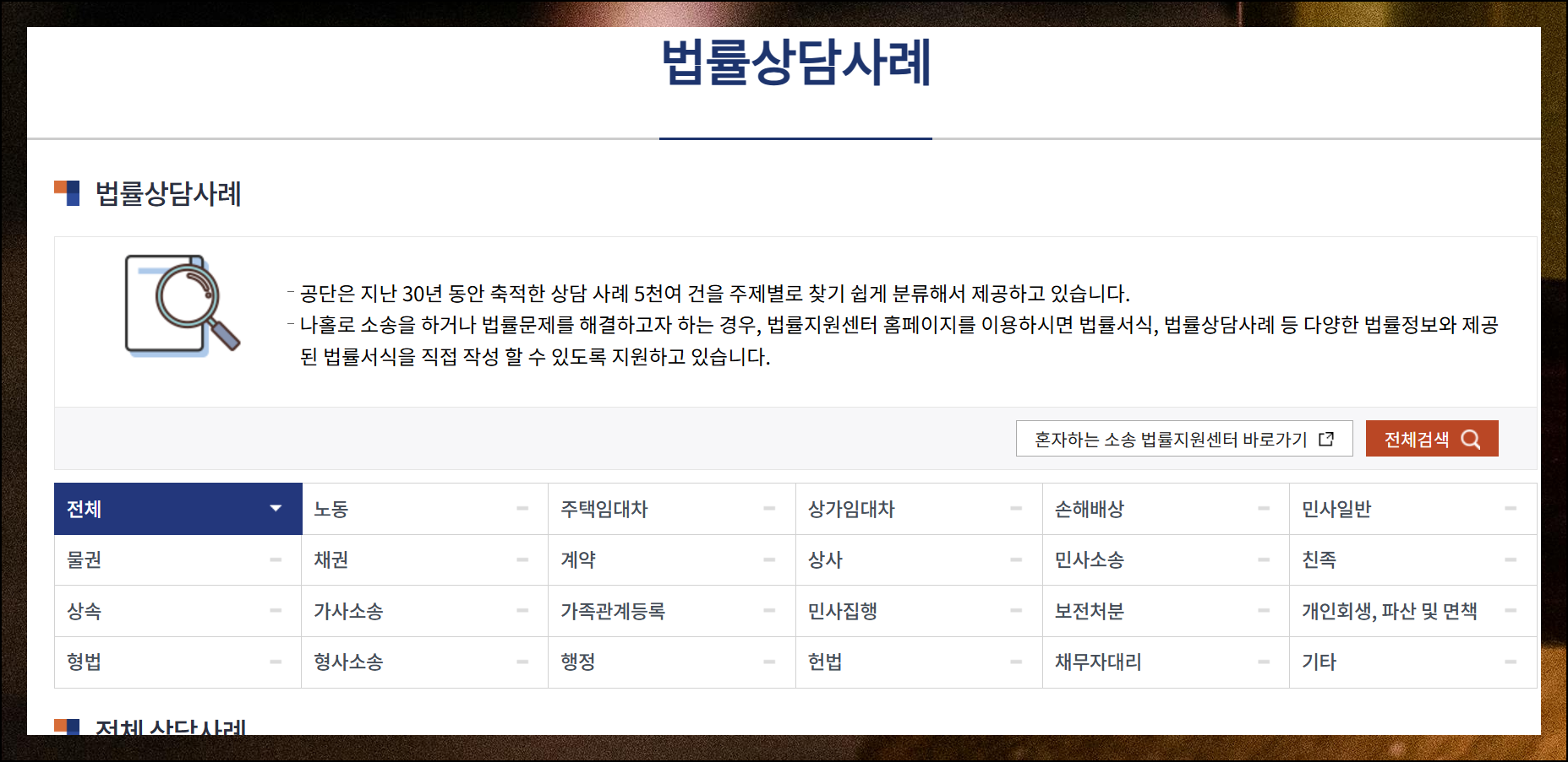 공공기관에서 운영하는 이 서비스는 온라인과 방문은 물론이고, 전화나 화상통화를 통해 상담 서비스를 무료로 제공하고 있어요. 임대차 분쟁부터 상속 문제까지 다양한 법적 고민에 대해 센터로부터 빠르게 답변을 받아보실 수 있습니다.