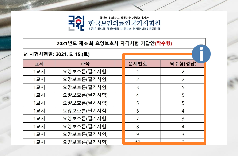 자료를 모두 풀었다면 정확한 채점을 위해 답안지를 활용해야 합니다. 해답지 자료도 무료 제공되고 있어서 스스로 채점을 할 수 있어요. 시험지에는 홀수형과 짝수형이 구분되어 있으니 본인이 푼 문제지와 일치하는 답안지를 선택해서 채점하세요.
