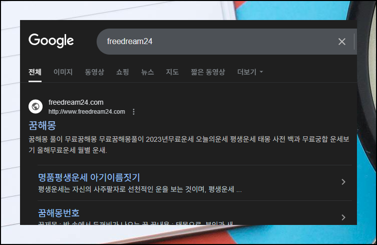 두 번째 방법은 꿈해몽을 활용해서 로또복권 번호를 추천받는 독특한 방식이에요. 무료꿈해몽 사이트를 이용할 건데, 검색창에 freedream24를 입력하면 쉽게 해당 사이트를 찾을 수 있어요.