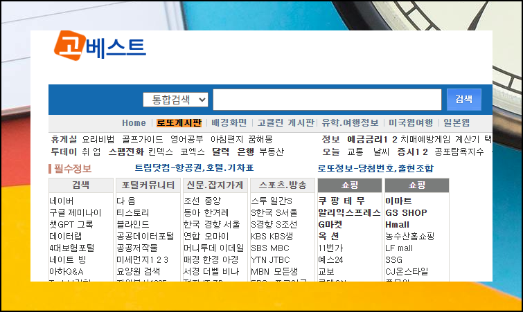 고베스트 사이트에 접속하면 정말 많은 서비스들이 있어요. "로또 게시판" 메뉴를 찾아서 클릭하면 됩니다. 사이트 구성이 잘 되어 있어서 쉽게 찾을 수 있어요.