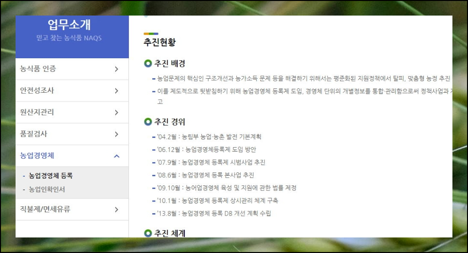 농업경영체등록 관련 페이지가 열렸어요. 이곳에서는 신청서 양식을 다운받거나 경영체 등록에 대한 상세한 안내를 받을 수 있습니다.