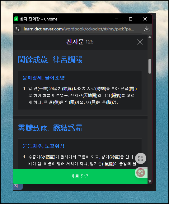 한자교본 자료와 사용하기에 좋은 학습 콘텐츠를 알려드리겠습니다. 천자문을 효과적으로 공부하는데 도움이 많이 돼요. 한문사전 홈페이지에 접속해서 우측 하단의 단어장 메뉴를 클릭해주시면 됩니다.