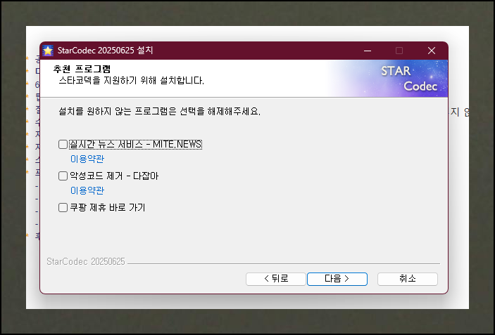다운로드한 설치 파일을 실행하면 일반적인 프로그램 설치와 비슷한 과정이 시작돼요. 처음에는 안내사항을 읽고 다음 버튼을 클릭하면 되는데, 구성 요소를 선택하는 단계에서는 조금 더 신중하게 접근해야 합니다. 특히 PC 사용 중에 광고가 나타나는 것을 원하지 않는다면, 설치 항목 목록 맨 아래에 있는 광고 지원 관련 항목의 체크를 반드시 해제해주세요.